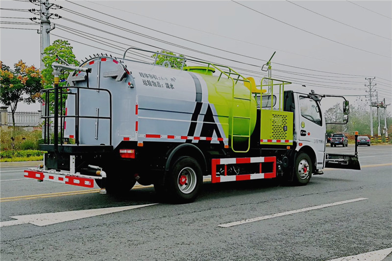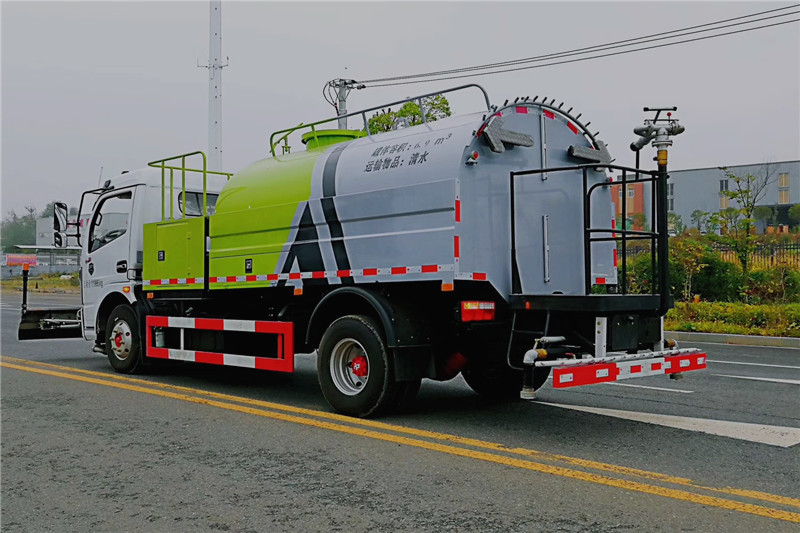 東風(fēng)多利卡高壓清洗車是一種雙發(fā)動(dòng)機(jī)、雙水泵清洗車,是在標(biāo)準(zhǔn)二類底盤的基礎(chǔ)上,加裝高壓沖洗系統(tǒng)、低壓沖洗系統(tǒng),由機(jī)械、液壓(氣路)、電器三部分合為一體的專用沖洗作業(yè)車。本車具有獨(dú)立的高、低壓兩套水路系統(tǒng),為清洗車工作提供壓力水源。其工作原理是:利用高壓水泵產(chǎn)生的高壓水,經(jīng)噴水架的高壓噴嘴噴出,利用高壓水流的動(dòng)能,以高壓力、低流量的方式進(jìn)行清洗,強(qiáng)力去污,高效節(jié)水,能將路面的陳舊污漬清洗干凈;或高壓水經(jīng)左(右)角噴噴出,清洗路緣、人行道及護(hù)欄隔離區(qū);使用高壓噴槍還可清洗路標(biāo)、廣告牌、高架路等;噴霧系統(tǒng)具有強(qiáng)大的噴霧降塵、噴撒空氣消毒劑及調(diào)節(jié)空氣濕度功能。