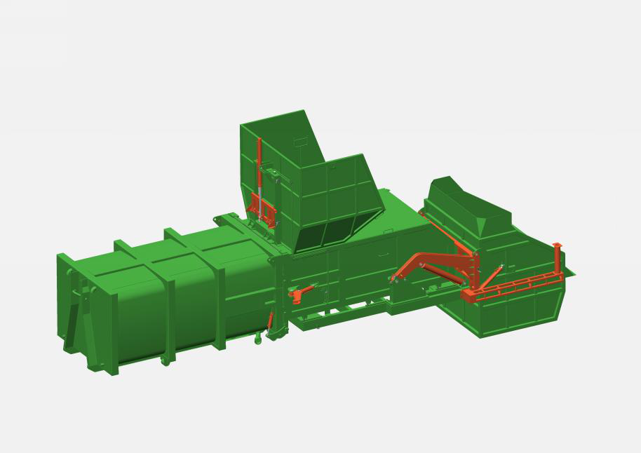 主機箱體包含:主機箱體、壓縮倉、壓頭、壓縮油缸、滑輪、液壓系統(tǒng)、電控系統(tǒng)等組成。其主要結(jié)構(gòu)件采用Q345高強度結(jié)構(gòu)鋼焊接成成,具有較有的耐磨性;主機箱體上的滑輪與滑臺導(dǎo)軌配合,使主機能相對滑臺滑動,液壓電控系統(tǒng)固定安裝于主機箱體上,整體簡潔美觀。箱體容積15m3,匹配16噸后雙橋車廂可卸式垃圾車。